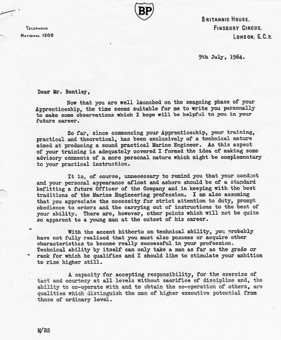 This is a letter I acquired from Paul Bentley, an apprentice of 1961 intake. This letter is full of sage advice for the young apprentice setting of in the dangerous world of temptation. I highly recommend that you read it closely and pay attetion to these jewels of wisdom.
